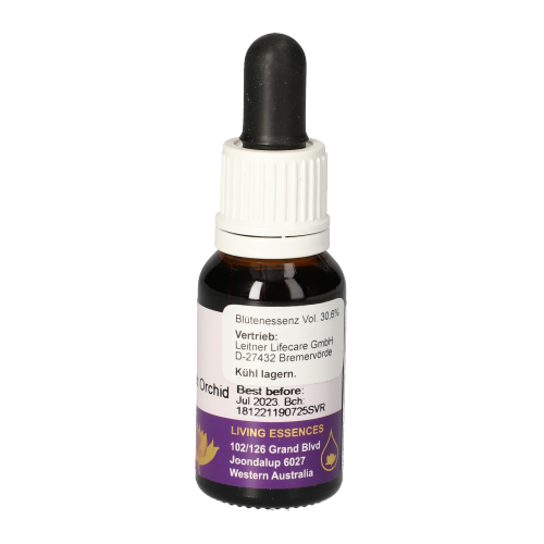 This bush flower essence alleviates mass hysteria and reduces the impact of mental influences or vibrations from certain people on sensitive individuals. Application: 6 times daily, place 1 drop under the tongue; or twice daily drink half a glass of water with 6 drops each. Essences can also be applied externally by mixing them into lotions or creams, or by adding them to bathwater, which is particularly effective. Composition: Aqueous plant extract of Pink Fairy Orchid, purified water, brandy. Notes: Alcohol content: 22% vol. Store in a cool place. Keep out of reach of children. Legal Notice: Essences and vibrational remedies are considered foods within the meaning of Art. 2 of Regulation (EC) No. 178/2002 and have no direct effect on body or psyche proven by classical scientific standards. All statements refer exclusively to energetic aspects such as the aura, meridians, chakras, etc.