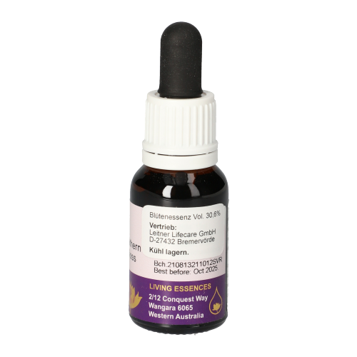 This bush flower essence reduces impatience and intolerance. It provides the ability to engage with what others are trying to communicate. Application: 6 times daily, place 1 drop under the tongue; or twice daily drink half a glass of water with 6 drops each. Essences can also be applied externally by mixing them into lotions or creams, or by adding them to bathwater, which is particularly effective. Composition: Aqueous plant extract of Yellow Leschenaultia, purified water, brandy. Notes: Alcohol content: 22% vol. Store in a cool place. Keep out of reach of children. Legal Notice: Essences and vibrational remedies are considered foods within the meaning of Art. 2 of Regulation (EC) No. 178/2002 and have no direct effect on body or psyche proven by classical scientific standards. All statements refer exclusively to energetic aspects such as the aura, meridians, chakras, etc.