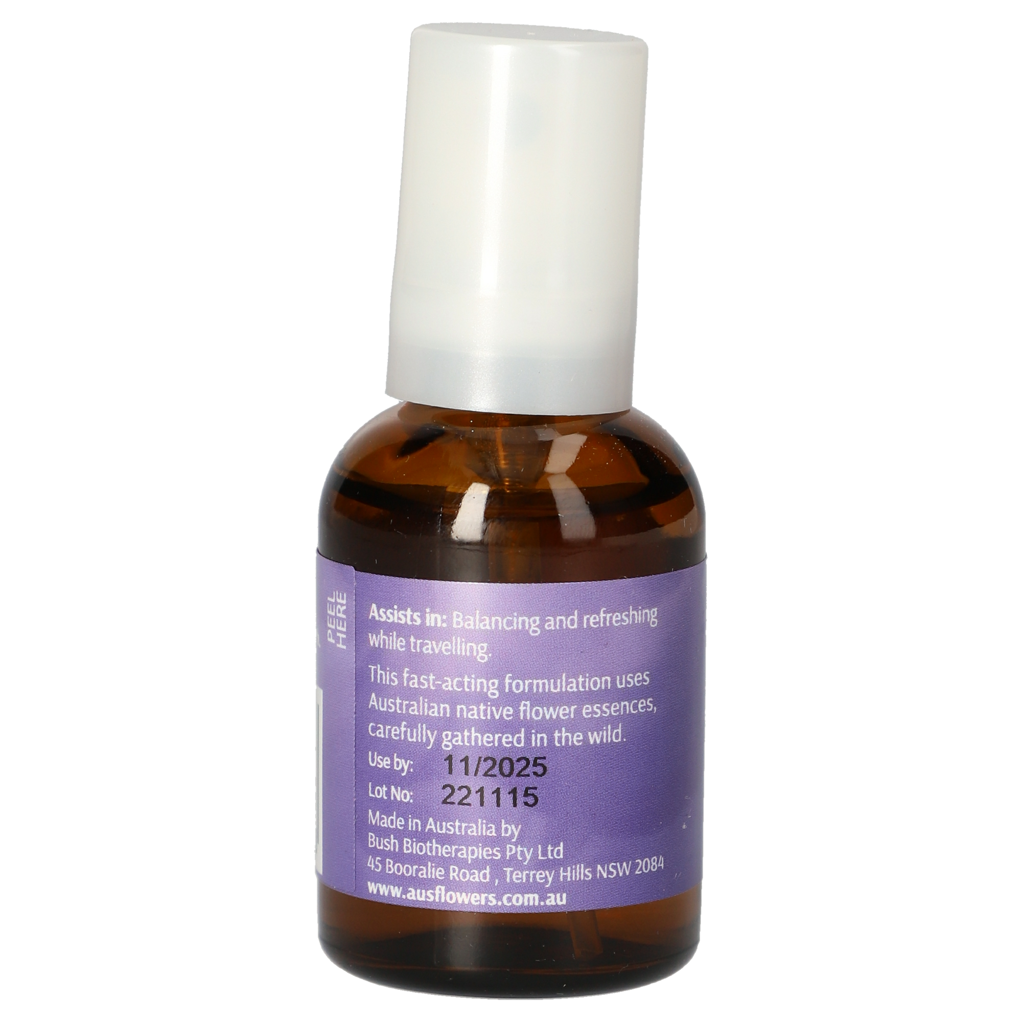 Aqueous plant extracts of Bottlebrush, Bush Iris, She Oak, Mulla Mulla, Crowea, Fringed Violet, Bush Fuchsia, Macrocarpa, Banksia Robur, Sundew, Paw Paw, Red Lily, Silver Princess and Tall Mulla Mulla, purified water and brandy.