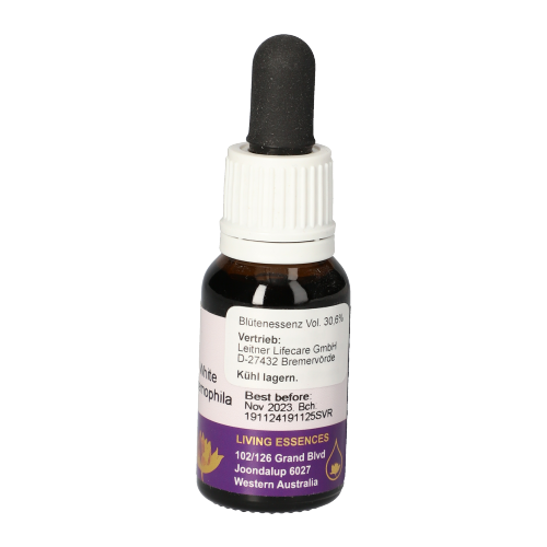 This flower essence helps to bring love into even the darkest corners of the universe, without being destroyed by a lack of sensitivity or the overwhelming suffering around oneself. Application: 6 times daily, place 1 drop under the tongue; or twice daily drink half a glass of water with 6 drops each. Essences can also be applied externally by mixing them into lotions or creams, or by adding them to bathwater, which is particularly effective. Composition: Aqueous plant extract of White Spider Orchid, purified water, brandy. Notes: Alcohol content: 22% vol. Store in a cool place. Keep out of reach of children. Legal Notice: Essences and vibrational remedies are considered foods within the meaning of Art. 2 of Regulation (EC) No. 178/2002 and have no direct effect on body or psyche proven by classical scientific standards. All statements refer exclusively to energetic aspects such as the aura, meridians, chakras, etc.