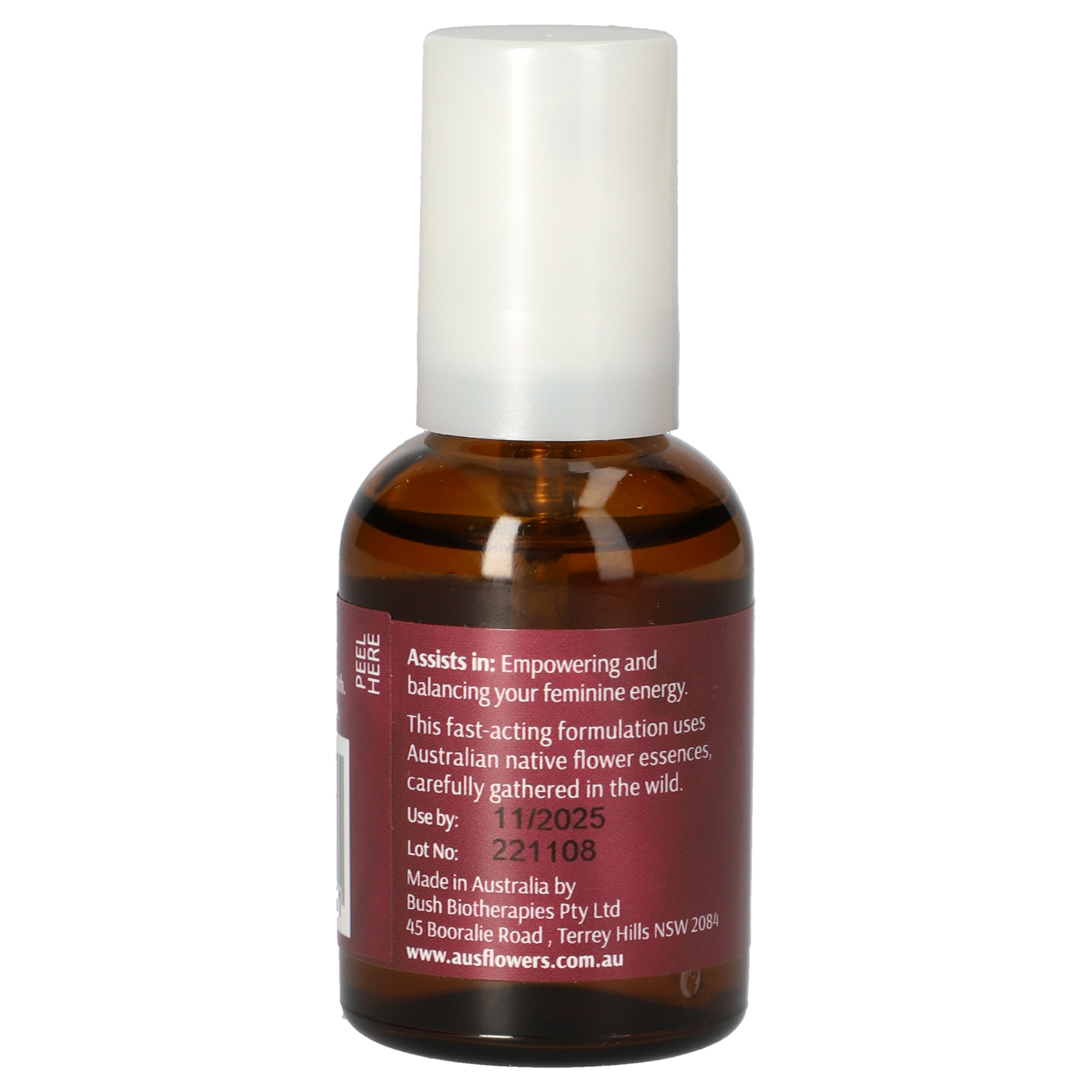 Aqueous plant extracts of Billy Goat Plum, Bottlebrush, Bush Fuchsia, Crowea, Five Corners, Mulla Mulla, Old Man Banksia, Peach Flowered Tea Tree, Pink Flannel Flower, and She Oak, purified water, brandy.